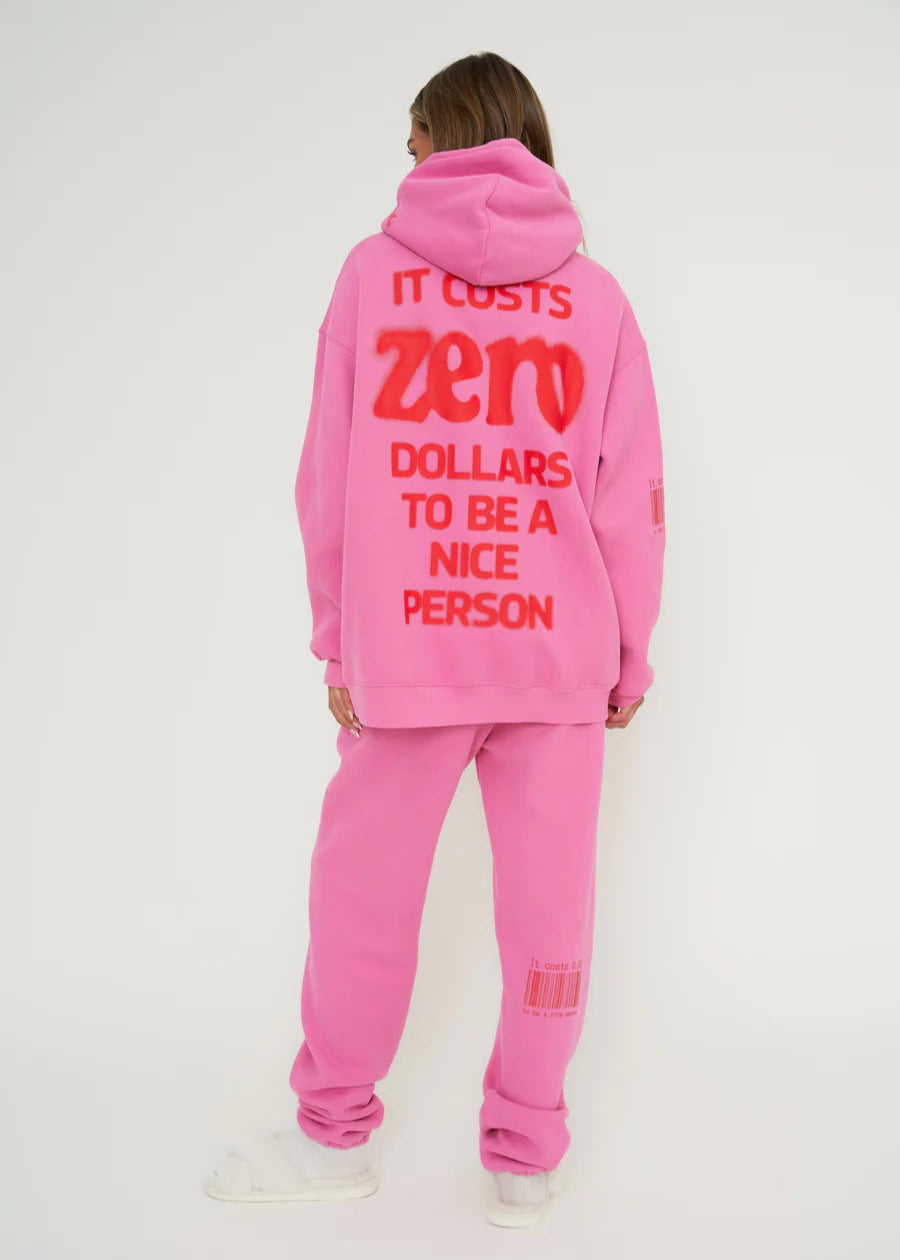 Soft, cozy, and full of good vibes. These relaxed-fit sweatpants from The Mayfair Group feature their signature “It Costs $0.00” graphic down the leg in bold red lettering. Made with a brushed fleece interior and elastic waist and cuffs, they’re perfect for lounging with purpose—or pairing with the matching crewneck for a full feel-good set.